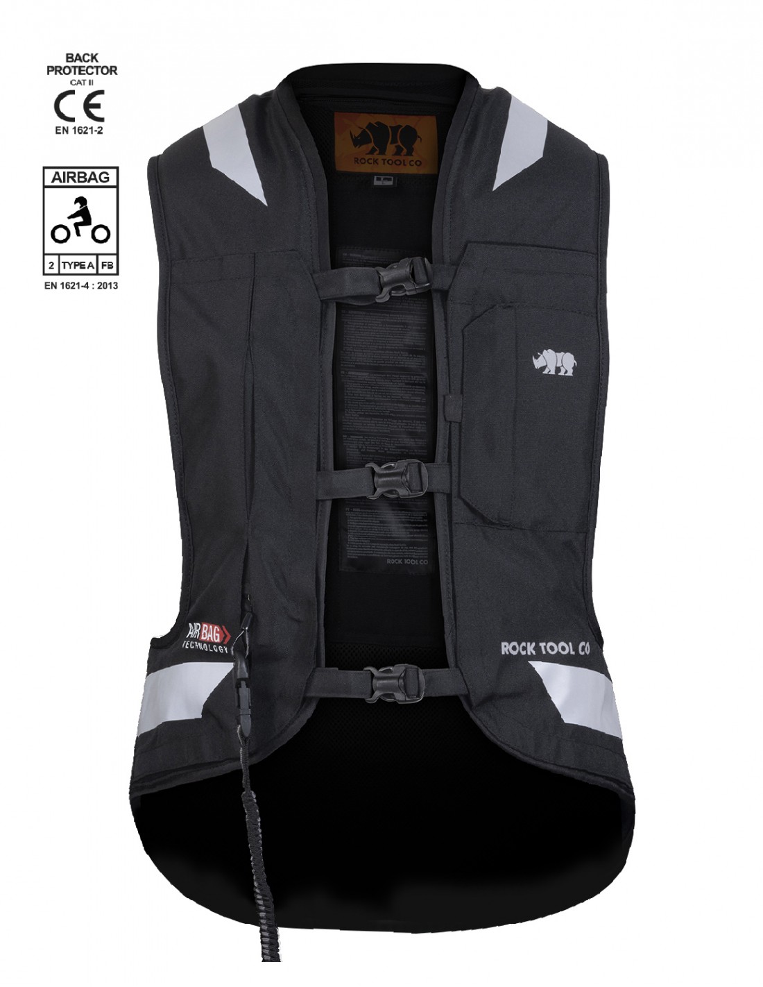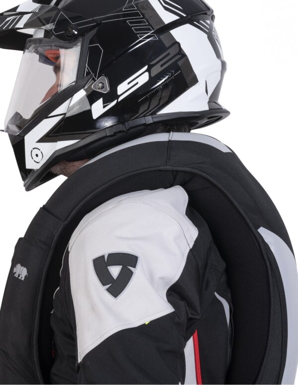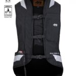 Chaleco protector con airbag para motoristas. Desarrollado en base al Concepto I-ARMOUR que garantiza una protección inteligente que se adapta a nuestro cuerpo. Las zonas de protección del chaleco Touring Pro son: columna vertebral, zona cervical, clavículas, caja torácica, órganos vitales, así como órganos blandos (bazo, hígado, páncreas, etc.). La forma del airbag mantiene sujetas la nuca y la columna vertebral, evitando así los latigazos cervicales y la hiperflexión.