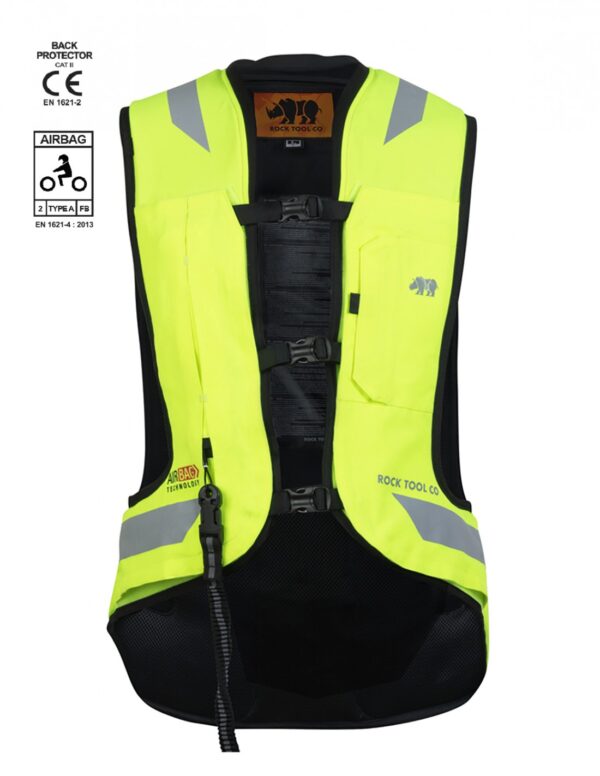 El chaleco queda conectado a la motocicleta mediante una correa que se sujeta al chasis de la moto. En caso de accidente, el sistema percutor activará la botella encargada de inflar el chaleco. La activación es instantánea, en menos de 0,2 segundos el chaleco estará inflado por completo.