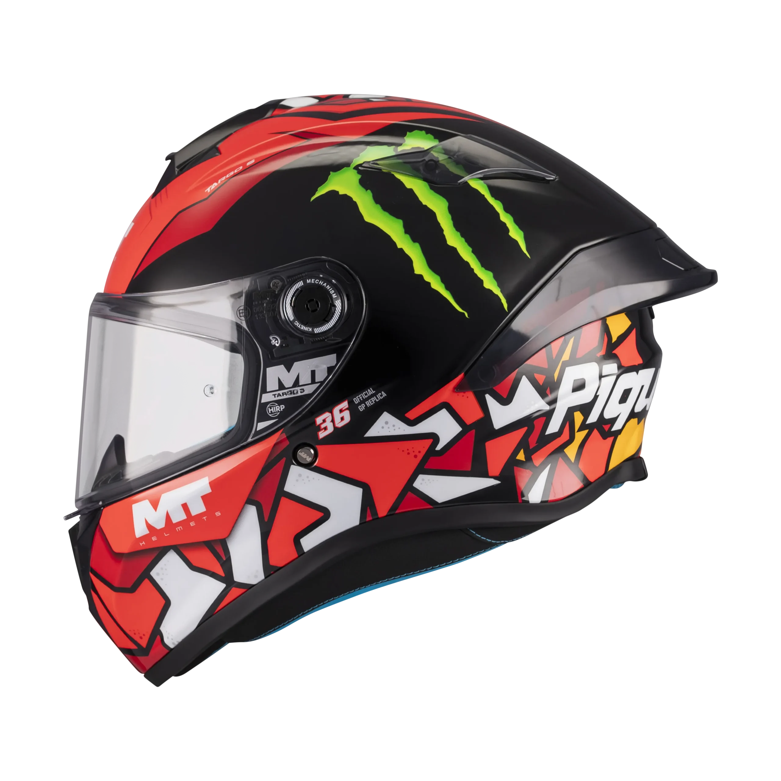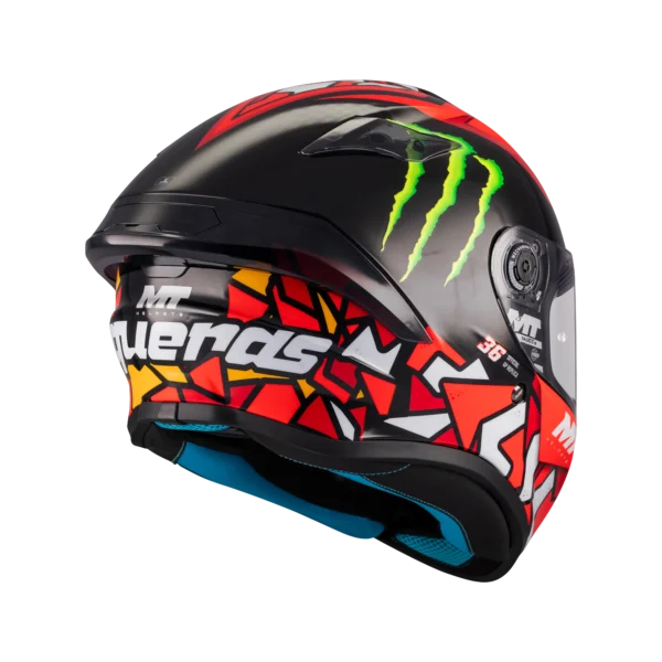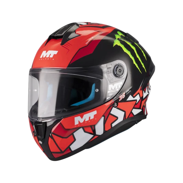 - MT-QVSS | Quick Visor Swap System: Sistema de liberación rápida de pantalla con dos botones practicables con el casco puesto y guantes.