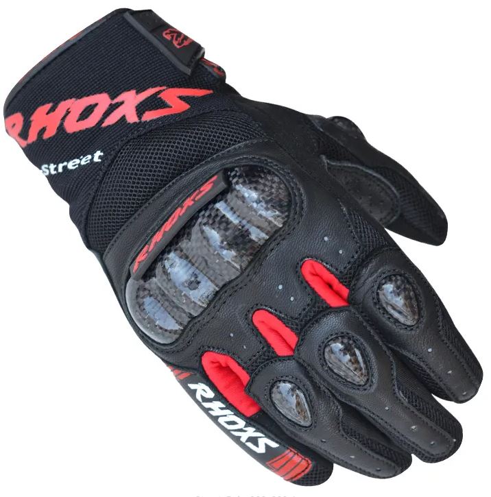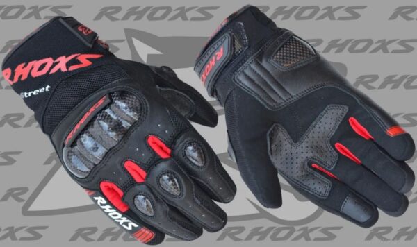 Guantes RHOXS STREET Rojo. Ligero, de estilo agresivo y muy duradero, los RH-STREET son unos guantes de verano ideales para la calle y pequeñas rutas. Incorporan un robusto protector de nudillos en carbono integrado en un tejido principal multi-panel y extremadamente resistente que está reforzado en las zonas críticas más expuestas al roce y al impacto, el RH-STREET es un guante inmejorable relación Calidad/Precio y con un rendimiento excelente.
